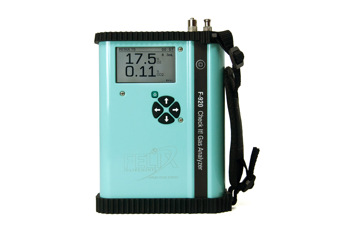 The F-920 Check It! Gas Analyser is a device that rapidly measures CO2 and O2 from 0-100%. Designed for QA personnel to take precise and speedy measurements of CO2 and O2 , the Check It! displays results in less than 6 seconds and has a sampling volume of 6.5 mL.